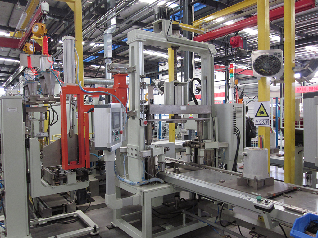 永磁同步驱动电机智能生产线,具有生产30-140Kw 永磁同步驱动电机10万台/年的能力。永磁电机生产线,由定子钳装岛式输送线,定子热套线,转子组装线,转子喷漆线,总装装配线,总装实验线组成。其中我公司自主开发的自动插磁钢机,定转子自动合装机,大大增加的工作效率,收到了用户的好评。高压脉冲清洗机